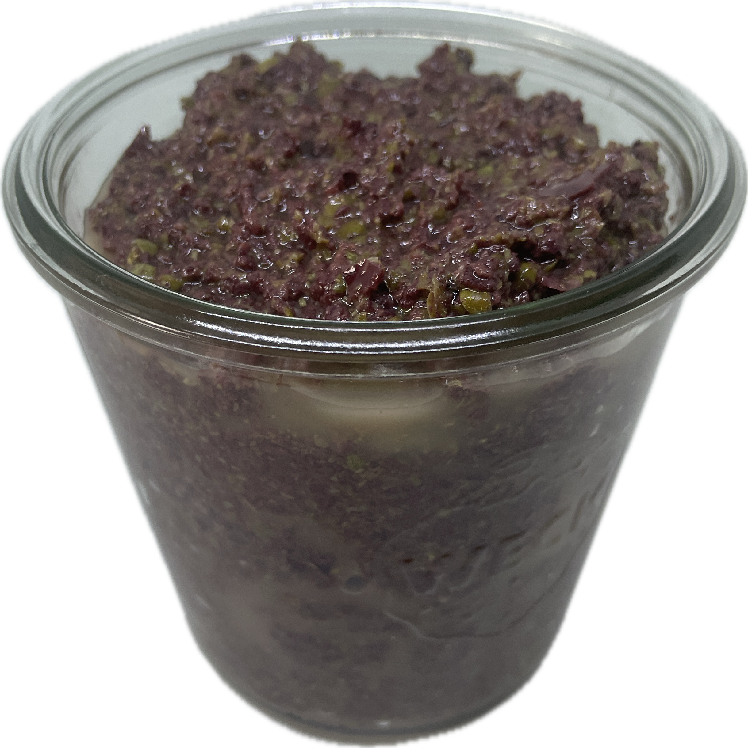 Tapanaden er lavet på oliven, kapers, frisk hvidløg rapsolie og salt.